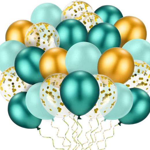 40 Pieces Teal Balloons Green Gold 12 Inch Mint Green Metallic Gold Balloons for Party Baby Shower Birthday Wedding Anniversary Decorations Jungle Theme Party Balloons