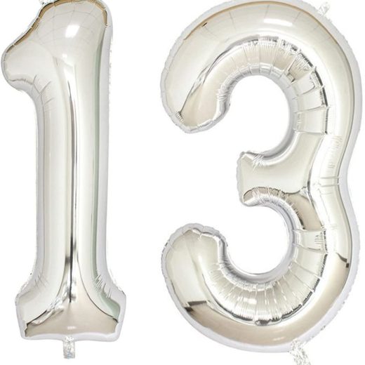 40inch Silver Foil 13 Helium Jumbo Digital Number Balloons, 13th Birthday Decoration for Girls or Boys,13 Birthday Party Supplies