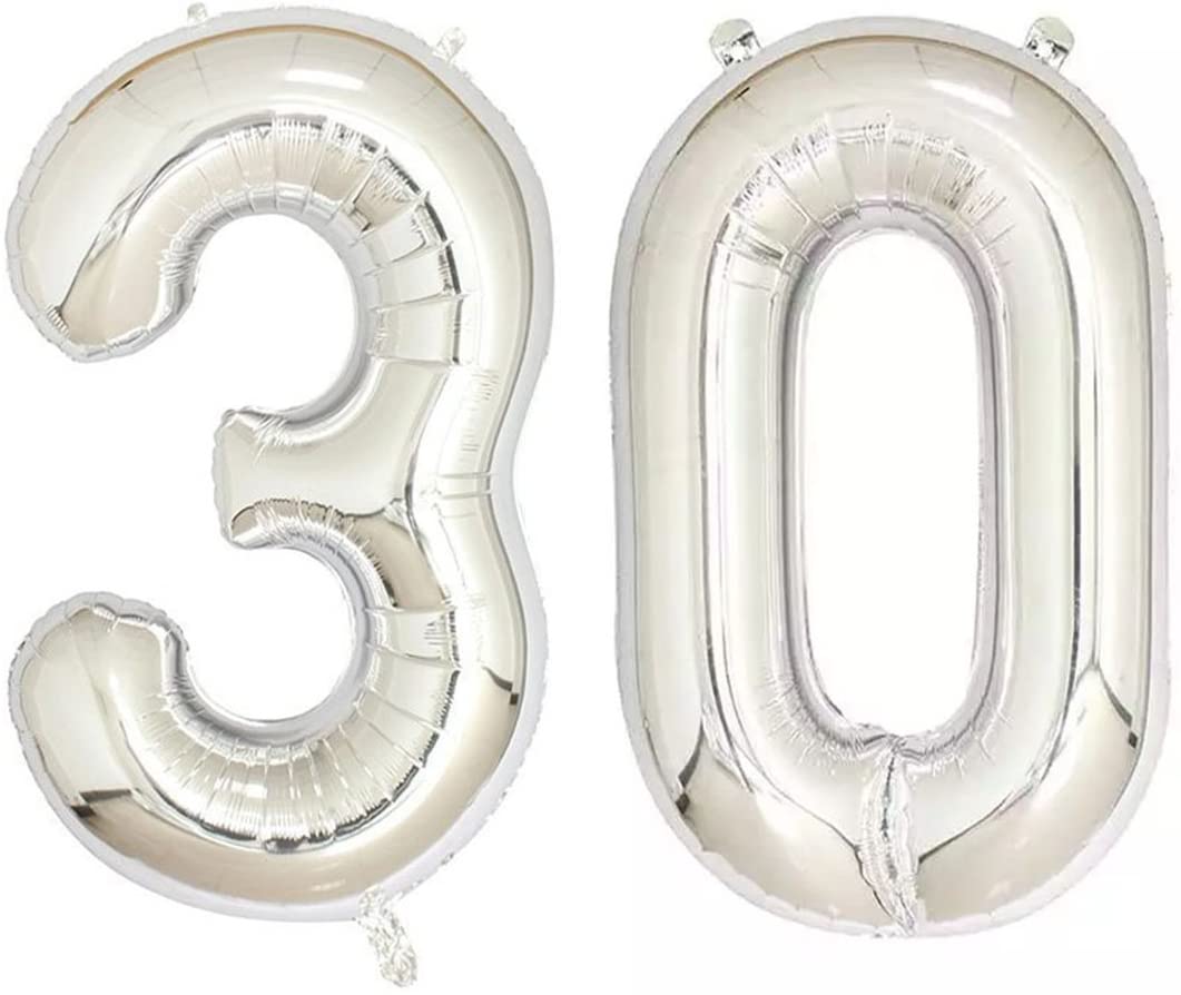 40inch Silver Foil 30 Helium Jumbo Digital Number Balloons, 30th Birthday Decoration for Women or Men, 30 Year Old Birthday Party Supplies