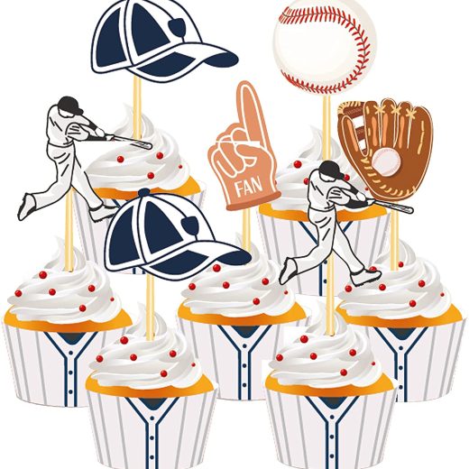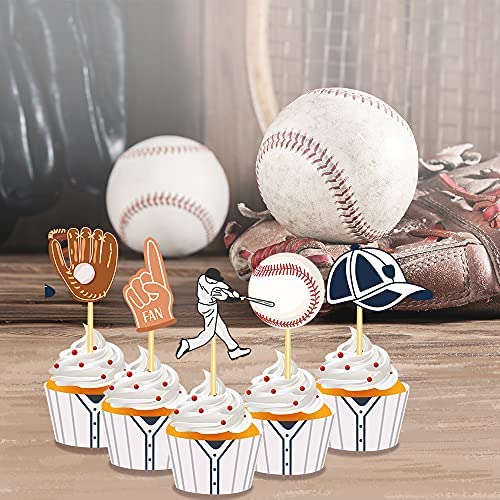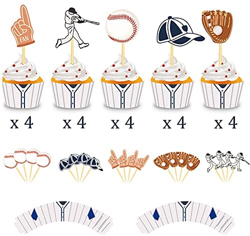 40Pcs Baseball Party Cupcake Toppers and Wrappers – Sports/Baseball Themed Concessions Baby Shower First Birthday Party Decorations Supplies Favors Cake Decor
