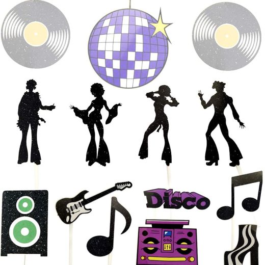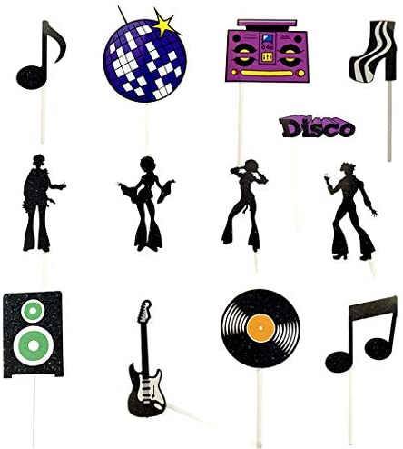 Material: Made of high quality paper material. Package Include: 42 pcs cake toppers, 12 styles, 3 for each style. Features 1. Made of high quality paper material, not easy to crush and deform.2. The cake toppers has various colors, different shapes, and stylish designs.3. Suitable for many occasions, such as, disco party, theme party, birthday party .4. Not only can be used for cake decoration, but also for other desserts or fruits. Note: Only the front has a pattern, the back is blank.