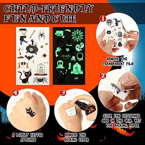 42 Pieces Halloween light up led necklace, wristband slap bracelets, led flashing rings and luminous temporary tattoos glow in the dark party supplies for Halloween party decorations supplies Create a festive feeling: The LED light up party favor necklace bracelet wristband ring and temporary tattoos can glow and flash in the dark. You will create a sense of excitement for yourself and your family or friends. Create a festive feeling in your room, home, Halloween party, etc. Reliable material: These necklaces, wristbands, rings and tattoos are made of non-toxic and odourless silicone and electronic module, giving off flashing colorful light at night, smooth and comfortable to wear. Now enjoy the fun of the luminous tattoos. Simple to use and remove: Choose the one you like, and then face down on skin, wet the tattoo with water and wait for 10 seconds. Then gently tear off the white surface. You will get a luminous Halloween tattoo (luminous tattoos need to be activated under light for a few minutes, which can make them more luminous in the dark). Specifications: Color: as shown in thw figure Main material: silicone and electronic module Size: Diameter of ring: approx. 0.8 inch (adjustable) Wristband: about 8.5 x 1.2 inches (LW) Perimeter of necklace: approx. 22 inches Tattoos: 4.7 x 2.9 inches (each sheet) Package includes: 24 x LED ring 6 x LED necklace 6 x LED wristband 6 x Luminous temporary tattoos Note: The pattern is assigned randomly. Please allow a small errors in size due to manual measurement. Small parts are included, please keep away from people under 3 years old to avoid swallowing.