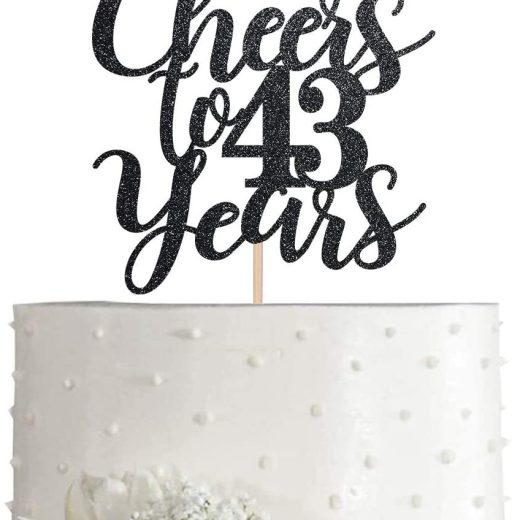 43 Black Glitter Happy 43rd Birthday Cake Topper, Cheers to 43 Years Party Cake Topper Decorations, Supplies