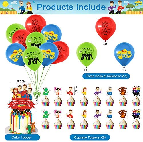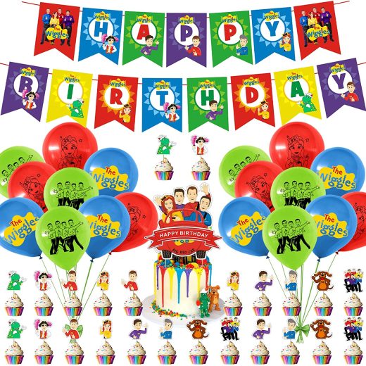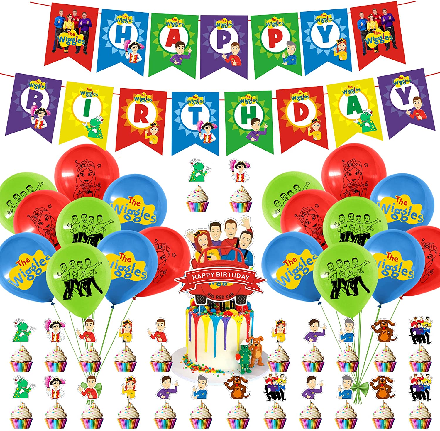 44 Pcs The Wiggles Theme Birthday Party Decorations,Party Supply Set for Kids with Happy Birthday Banner Garland,Big Birthday Inserted Cake Card , Cupcake Toppers,Balloons for Party Decorations