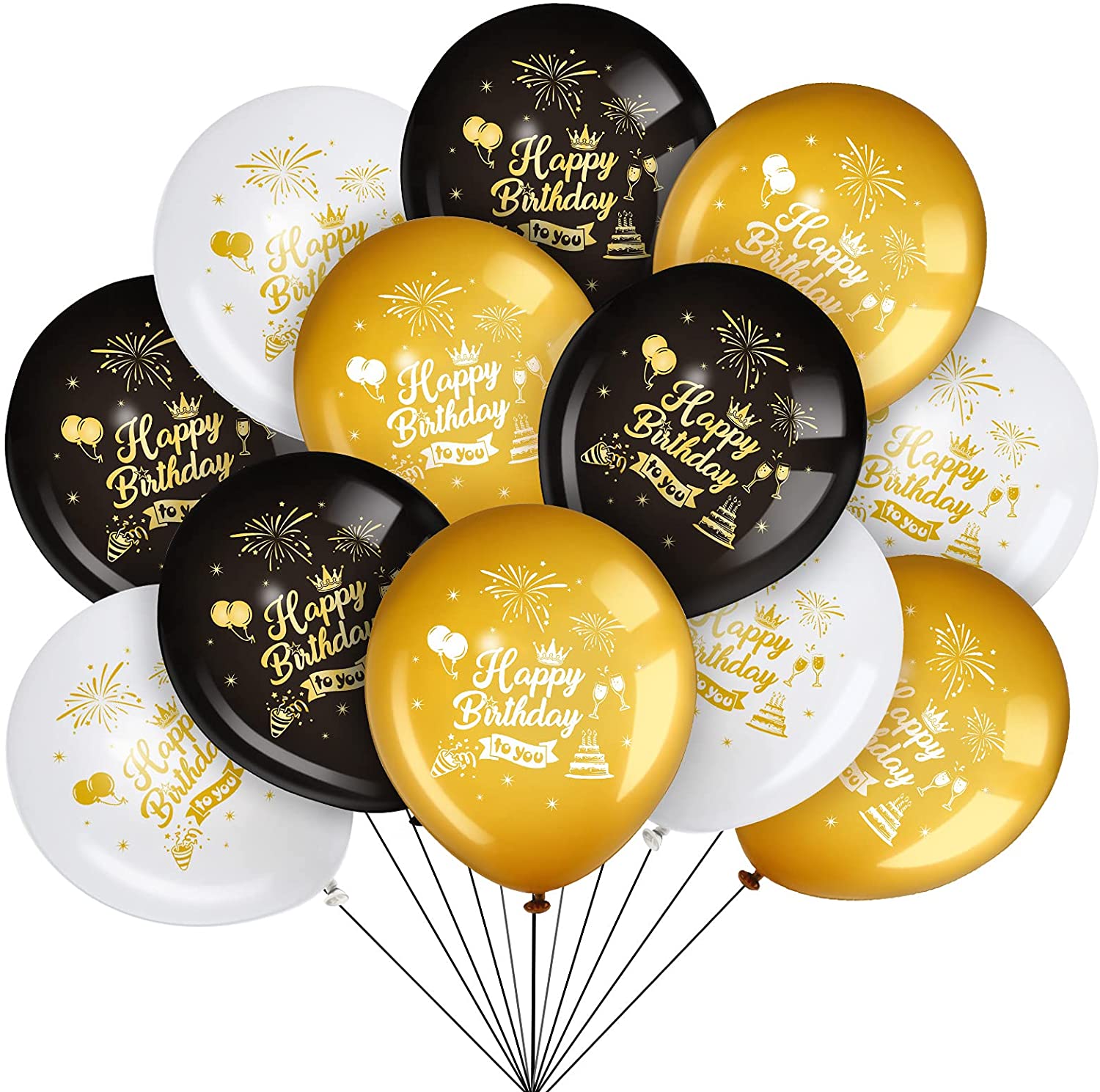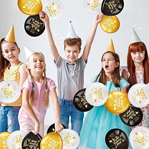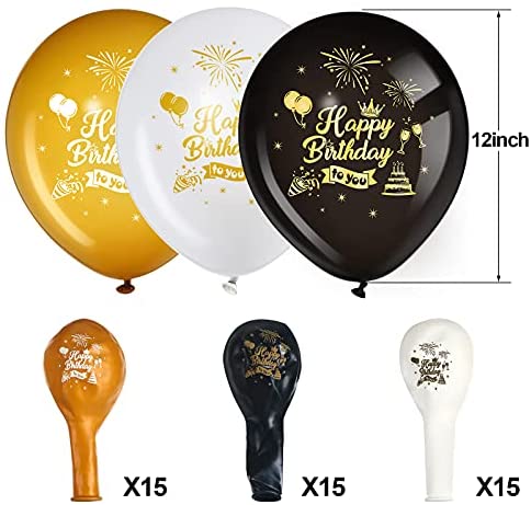 45 Piece 12 Inch Birthday Party Latex Balloons, Black Gold White Theme Party Balloon Birthday Anniversary Party Decoration for Girl Boy Women Men Birthday Party Supplies Indoor Outdoor Decoration