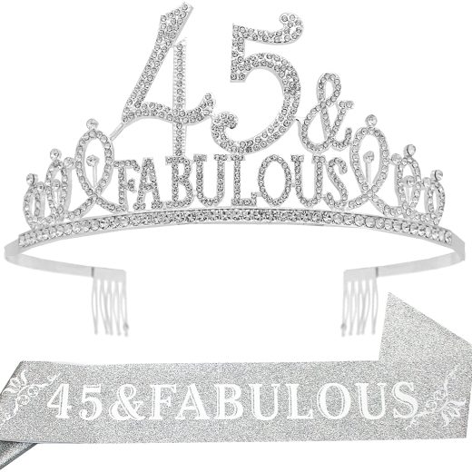 45th Birthday Gifts for Women, 45th Birthday Crown and Sash for Women, 45th Birthday Decorations for Women, 45th Birthday Party Favors, 45th Birthday Tiaras for Women, 45 Birthday Party for Women