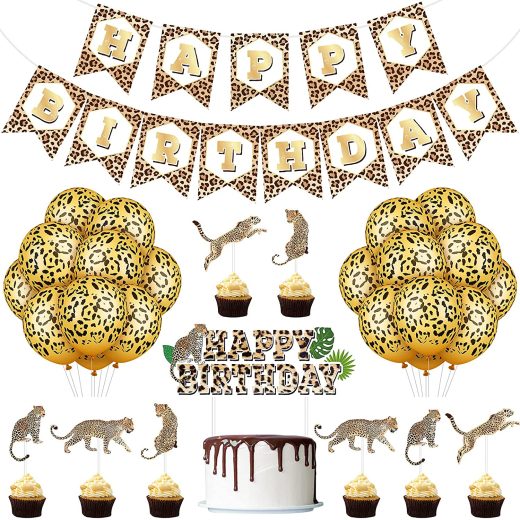46 Pieces Leopard Banner Cheetah Banner Cheetah Theme Balloons Leopard Cake Topper Leopard Cupcake Topper Leopard Wild Birthday Party Decoration for Cheetah Themed Birthday Party Decorations