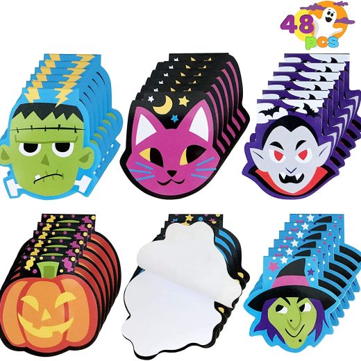 SUPER VALUE PACK. Our character notepad set comes in 48 pieces with 6 spooky designs: pumpkin, cat, witch, vampire, skull, and a monster. UNIQUE AN…
