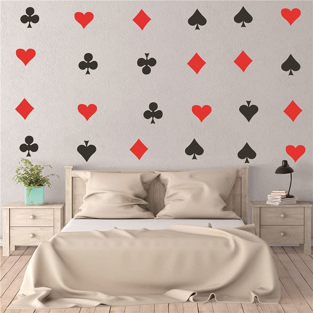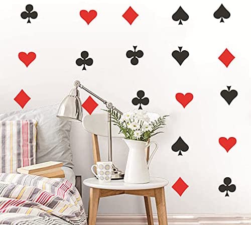 48 pcs/Set Poker Cards Playing Wall Decal Game Room Spade Club Heart Diamond Pattern Wall Decoration Stickers Vinyl Living Room Bedroom Wall Mural TM-25 (Black+RED)