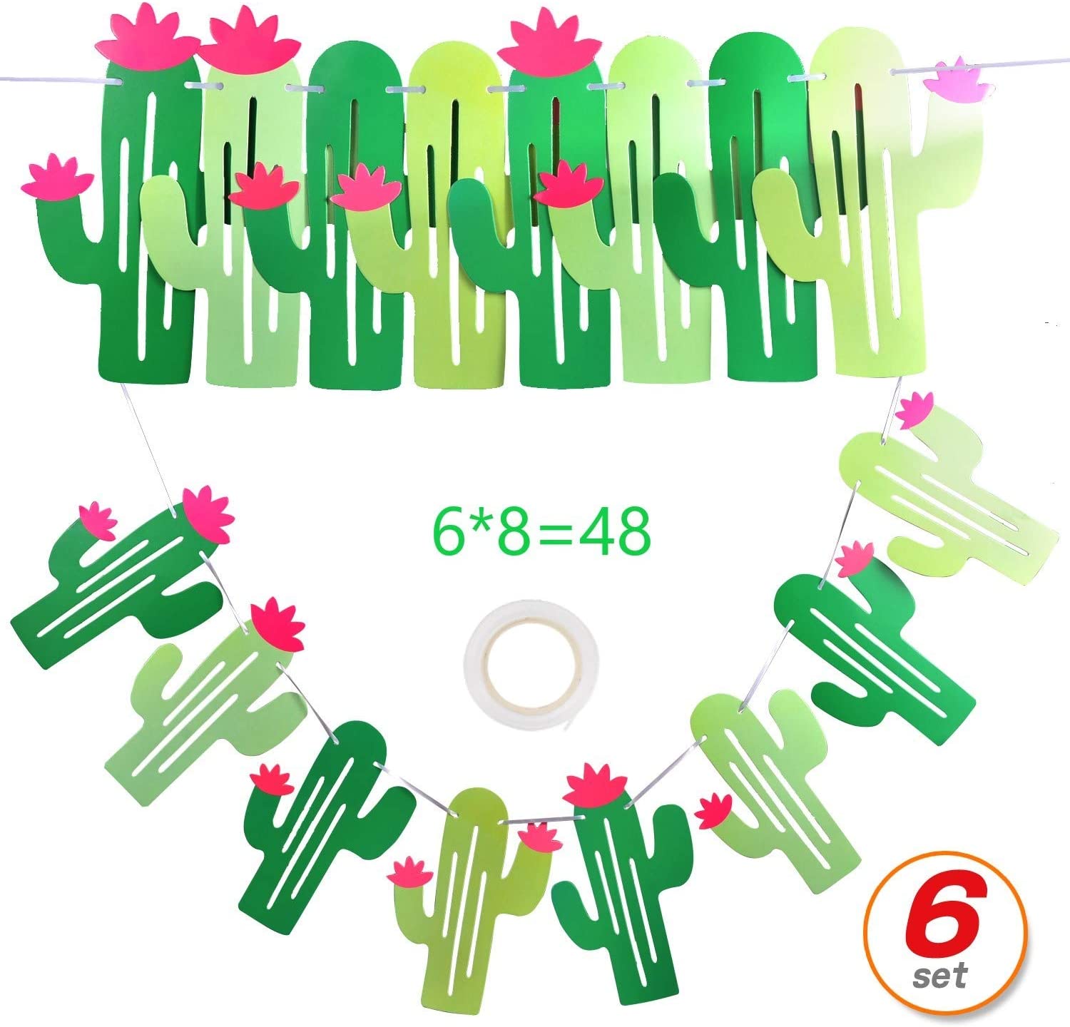 48 Pcs(6 Pack) Cactus Banner llama Fiesta Bachelorette Garland Cactus Green Fiesta Banner Party String Banner For Hawaii Party Kids Birthday Jungle Theme Party Wedding Taco Cinco De Mayo Party Decor