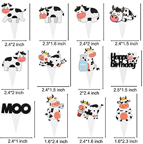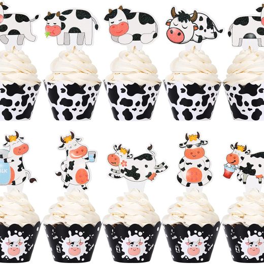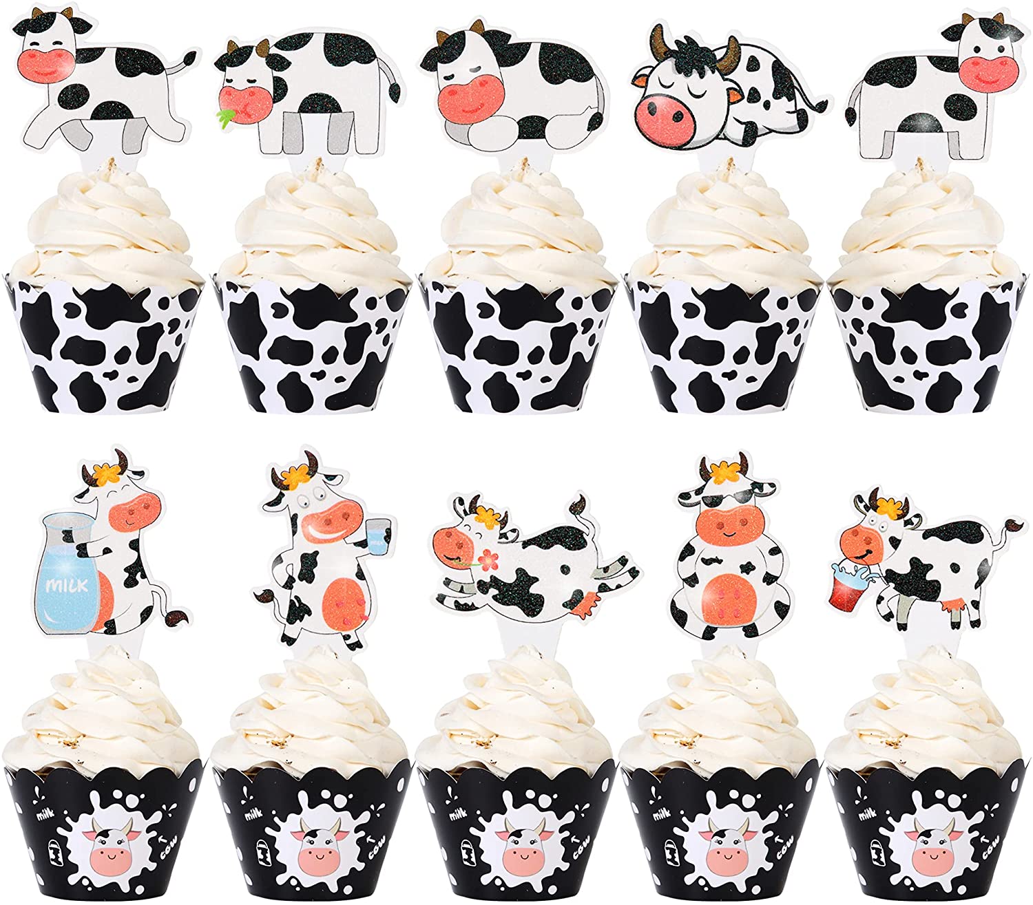 48Pcs Milk Cow Party Decoration Farm Theme Cake Cupcake Toppers Wrappers for Barnyard Party Kids Birthday Baby Shower Favor Supplies.