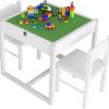 ?Childrens Furniture Set?Included 1 Table and 2 Chairs for boys and girls ages 3 and up, made of sturdy engineered wood for easily assemble and clean. ?2 in 1 Activity Table?Double-sided playboard as the desktop, which is convenient for quickly converting the building block panel into a smooth tabletop for eating, coloring, reading, handicrafts after the construction time is over. The building block panel is suitable for most building blocks (excluding building blocks). ?Hidden Storage?Hidden Storage Compartment under the tabletop creates a lot of storage space for building blocks, toys, books etc. Keep a neat room with ease. Perfect for your kids’ bedroom, playroom. ?Assembled Dimension?Toddler table: 23.3”W x 23.3”D x 21.7”H; Toddler Chair: 10.4”W x 11.9”D x 20.7”H ?Great Gift?Wooden activity table and chair set is a best gift for kids, they will enjoy their happy playtime and learning time.