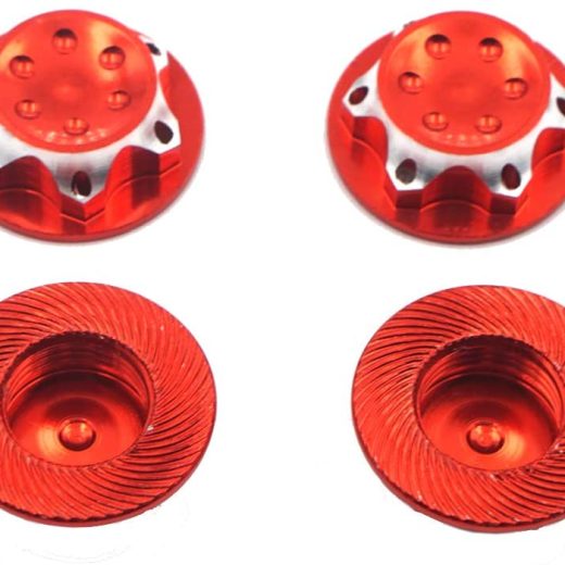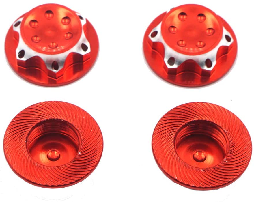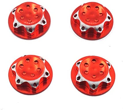 Compatible with Gama Losi HeBao AE Team-C HSP 1/8 RC Car Truck. Non-slip locking more reliable. Material: Aluminum Alloy Wheel Hub Anti-Dust Cover for 1/8 RC Car Outer Diameter: 17mm. Inner Diameter: 11mm. Thread:1.0mm Color : Red Package include: 4 x Wheel Hub Anti-Dust Cover