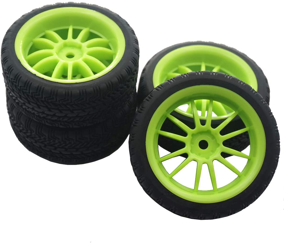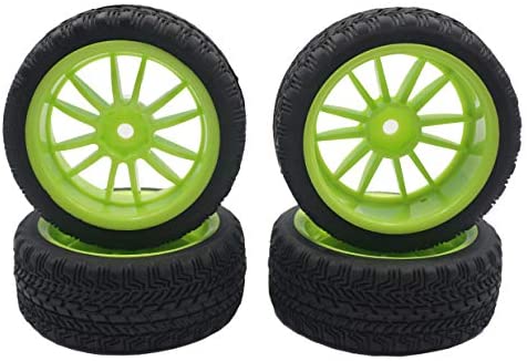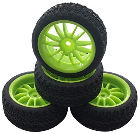 Important Note: The tires and wheel rims are separated, you need to assemble and glue them together by yourself. Compatible with Redcat Hpi Tamiya Associated HSP ExceedRC 1/10 RC on-road Racing car,touring car Tire Parameter: Tire Outside diameter: 65mm Inner diameter: 45mm Hexagon coupling: 12mm Tires wide: 26mm Material: Tire:Soft Rubber Wheels:Plastic With foam in the tire Color:Black + Green Weight: 125g/Set Package includes: 4 x Wheel Rims and Tires