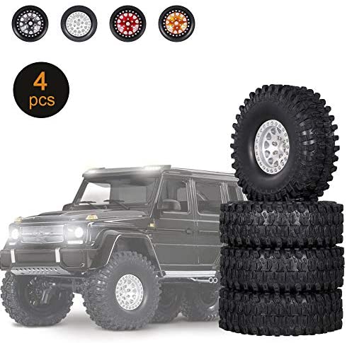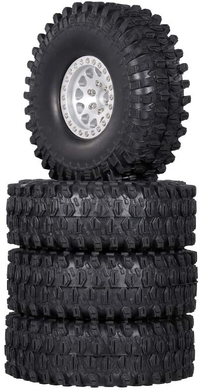 4PCS 1.9 Inch RC Crawler Rubber Tires with Metal Rim for 1/10 RC Rock Crawler Traxxas TRX-4 TRX-6 Axial Scx10 90046 RC4WD RC Car Parts (Silver)