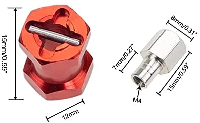 Specification: Material: Aluminium Alloy Options (Thickness ): 15mm Red Fit: for D90 AX10 CC01 SCX10 F350 RC Car Outter Diameter: 12mm Inner Hex: 6mm Weight: 26-38g Type: RC Model Part & Acces Package List: 4 * Hex Adapter 4 * Bolt