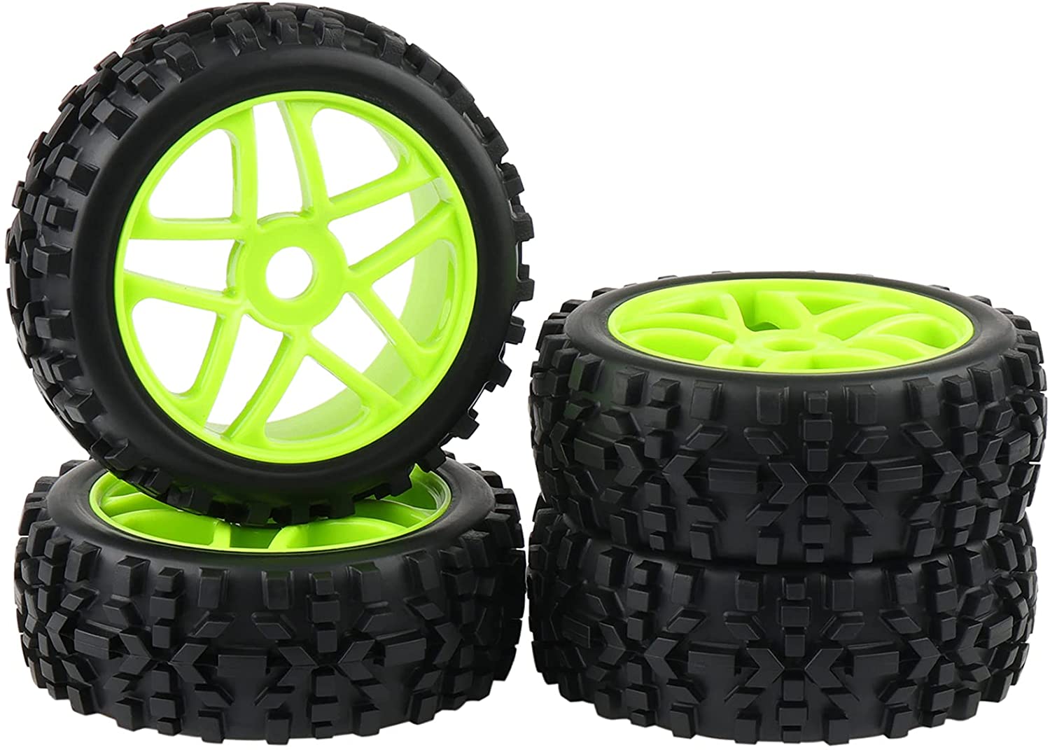 4PCS 1:8 RC Tires 17mm Hub Wheel Rims Pentagram for 1/8 Scale Off-Road Buggy Green