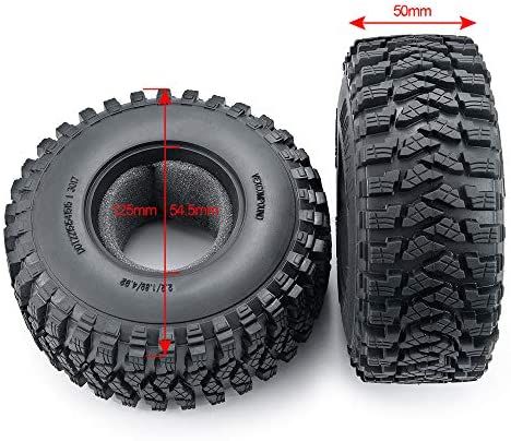 4pcs 2.2inch 125mm/4.9inch RC Rubber Wheel Tyre Tires with Foam Insert for 1/10 RC Crawler Car Axial Wraith 90048 RR01