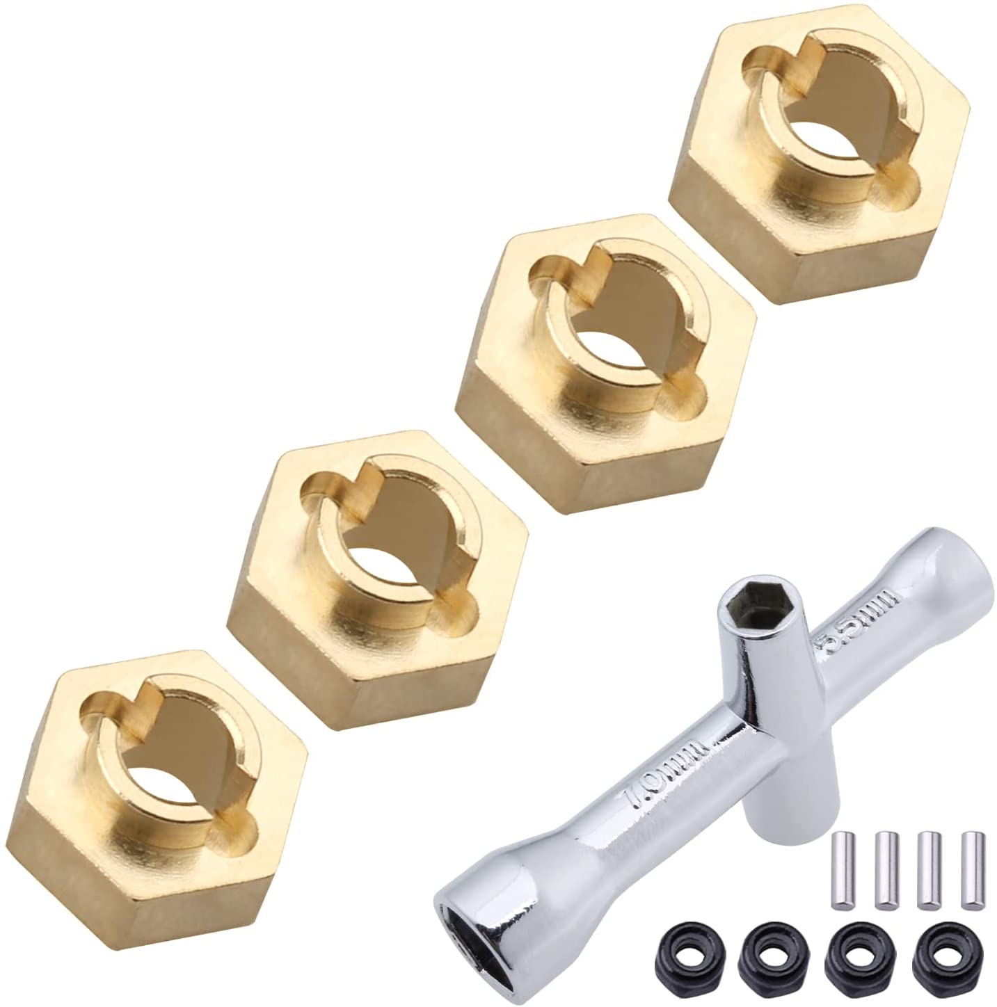 4pcs 7mm Brass Hex Wheel Hubs with Locknuts Hex Sleeve Wrench for AXIAL SCX24 AXI90081 Upgrades 1/24 RC Crawler Car