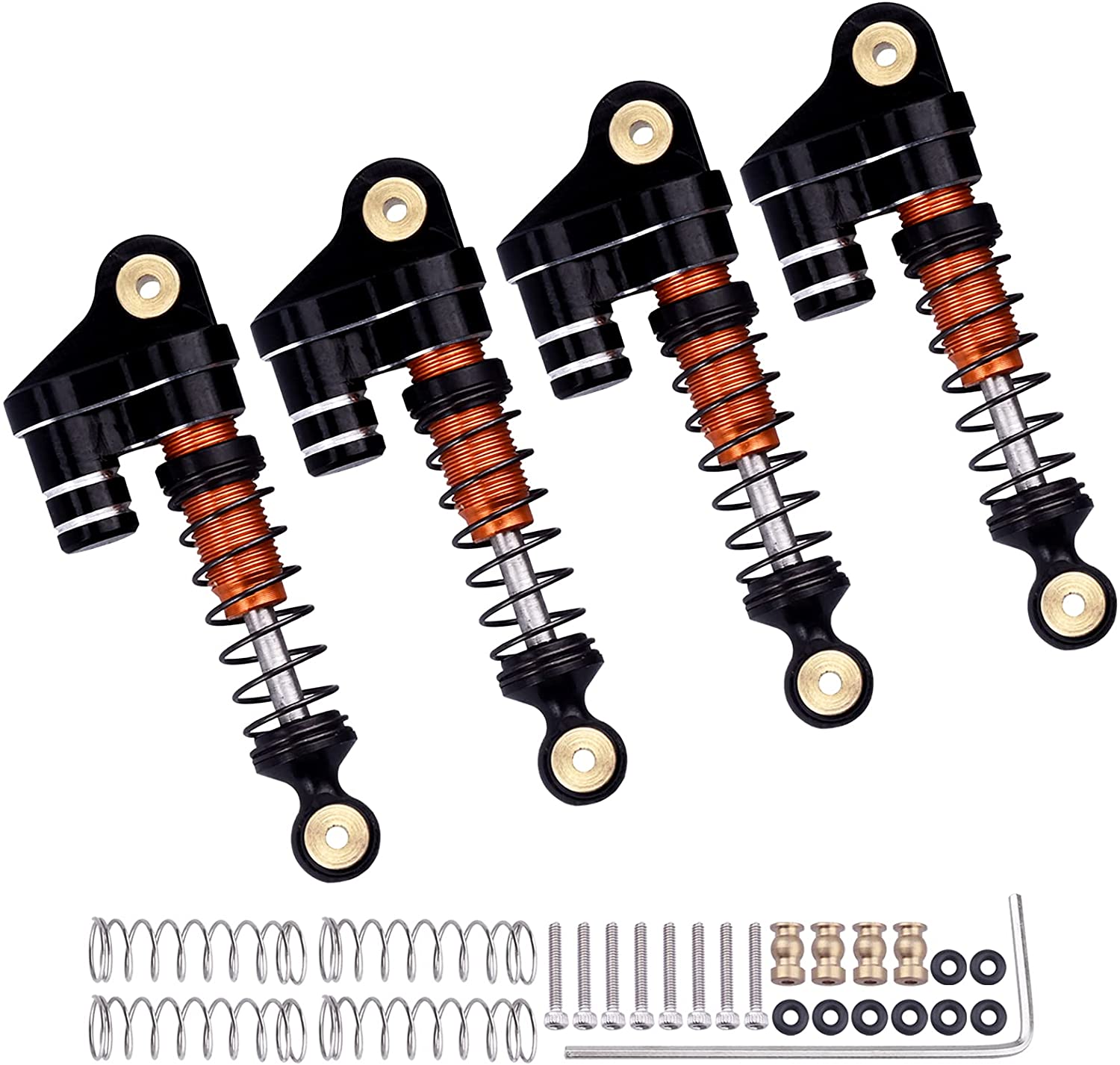 4PCS Aluminum Shocks Threaded Mini Damper Front & Rear for Axial SCX24 Upgrades Full Metal (Black&Orange)
