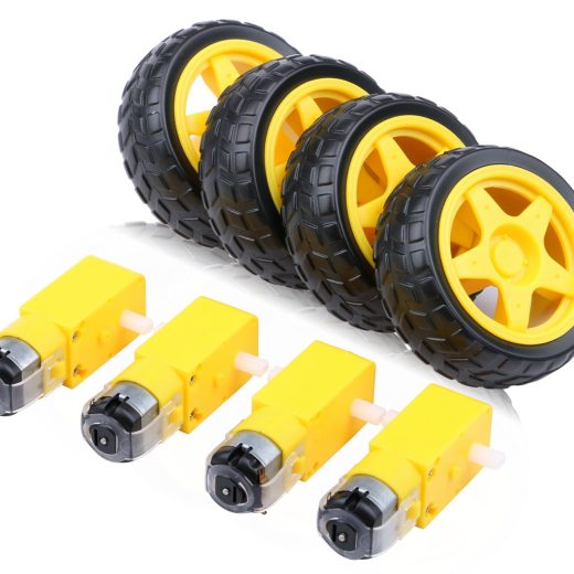 Be the first to review “4pcs DC Electric Motor 3-6V Dual Shaft Geared TT Magnetic Gearbox Engine with 4Pcs Plastic Car Tire Wheel, Mini F67mm Smart RC Car Robot Tyres Model Gear Parts” Cancel reply
