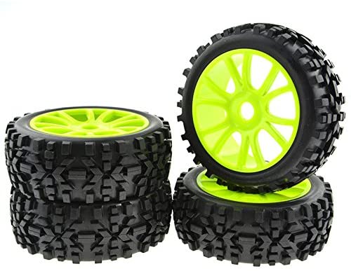 4PCS Green RC 1:8 Scale Double 6 Spoke Wheel Rims Rubber Tires Off Road Buggy Parts