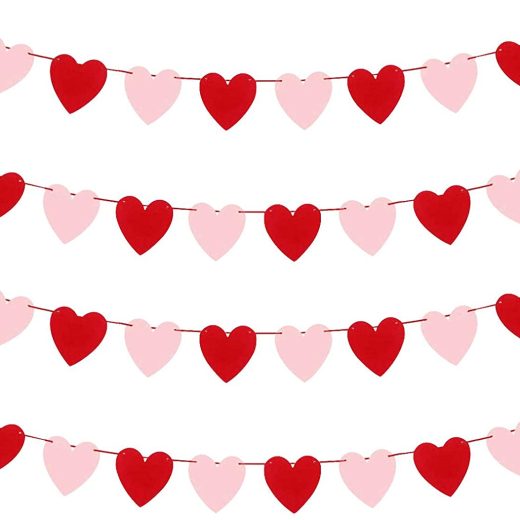 Purchase our heart garland banner to decorateTell your lover your true feelings.Give your lover an unforgettable memory.DON’T HESITATE ANYMORE!WISH ALL LUCKY THINGS COME WITH YOU! SpecificationsSize: 4 x 4.5 inches/10 x 11.5 cm (each flag)Color: red, pinkPackage includes: 4 strings x heart garland decorations (each consisting of 12 pieces flags)Weight: 1.41lb