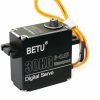 Compliant with most standard receiver connector: Futaba, Hitec, Sanwa, GWS. Great for truck, Boat, Racing Car, Helicopter and Airplane. Power Supply: Through External Adapter. Stable and Shock Proof. Operating Speed : 0.17sec / 60 degrees (4.8V no load) Operating Speed : 0.13sec / 60 degrees (6.0V no load) Stall Torque : 13 kg-cm (180.5 oz-in) at 4.8V Stall Torque : 15 kg-cm (208.3 oz-in) at 6V Operation Voltage : 4.8 – 7.2Volts Gear Type: All Metal Gears Connector Wire: Heavy Duty, 11.81 (300mm) Package includes: 4 X MG995 micro servo 4 X Servo arms and screws set