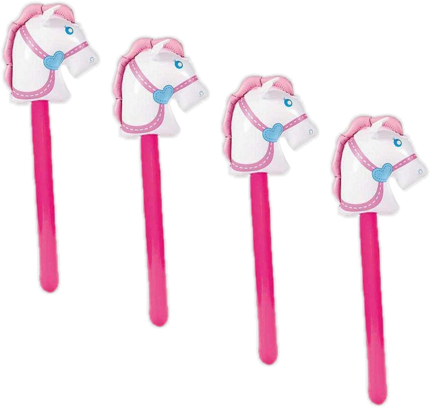 4PCS Pink Inflatable Stick Horse Balloons -Pool Kids/Cowboy Themed Party Supplies Decorations Wedding Birthday Party Favors -37Inch