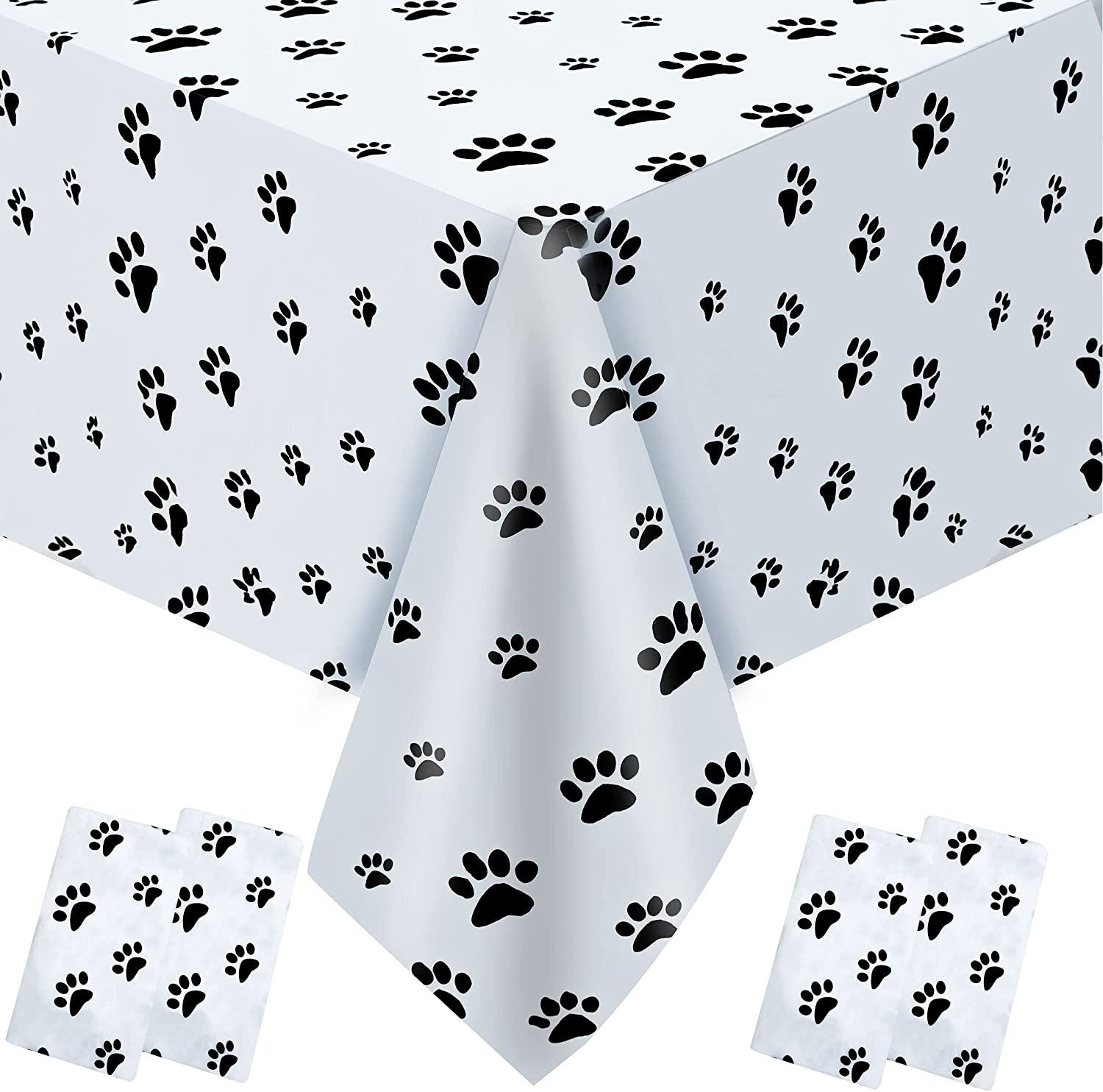 4pcs Puppy Dog Paw Print Tablecloth Plastic Dog Party Decorations Dog Themed Birthday Party Supplies for Kids Disposable Puppy Table Cover for Lets Pawty Party Supplies Decorations