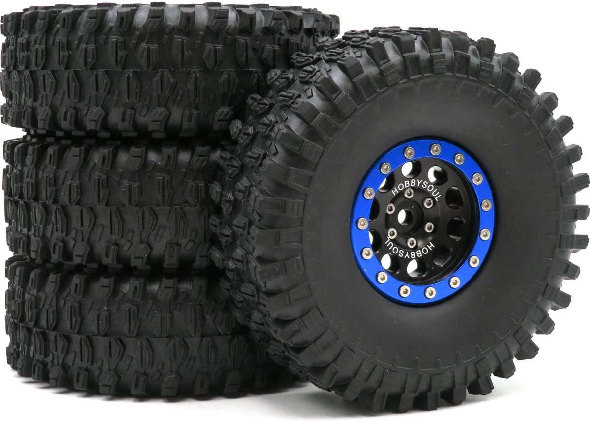 4pcs RC 1.9 Super Swamper Crawler Tires Tyre Height 120mm & Aluminium 1.9 Beadlock Wheel Rim Hex 12mm