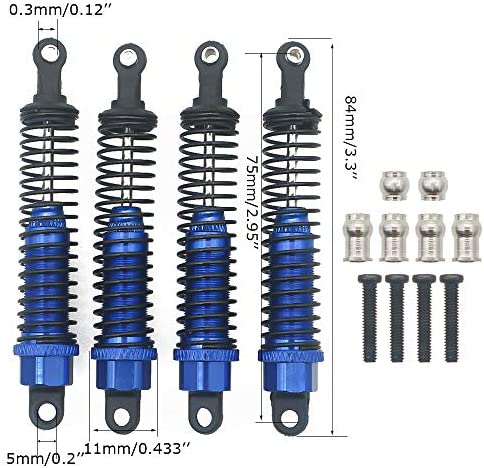 4Pcs RC Adjustable Shocks Absorber Springs Set Upgrade Parts 86mm 1/16 Buggy Truck Off-Road HPI HSP Traxxas Losi Axial Tamiya Redcat Car(Dark Blue)