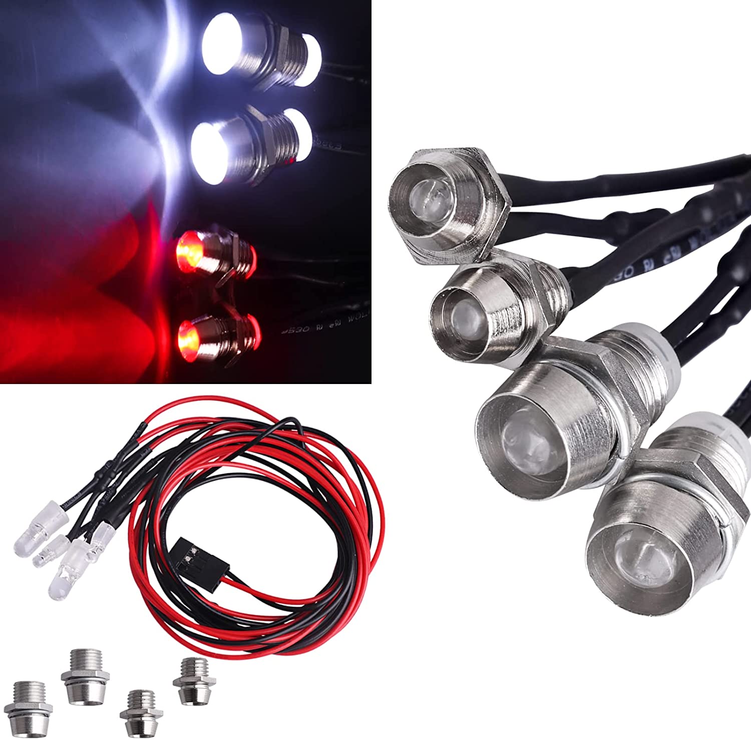 4Pcs RC LED Lights Kit Accessories RC Headlights/Taillight Kit Accessories for 1/10 1/8 Traxxas HSP Redcat RC4WD Tamiya ARRMA Axial SCX10 D90 HPI HSP RC Car(2 White+2 Red)