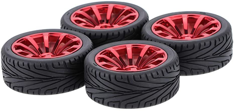 4PCS RC Tire and Plastic Wheel Set for 1/10 Scale On Road Touring Racing Drift Car Traxxas HSP HPI Tamiya (Red)