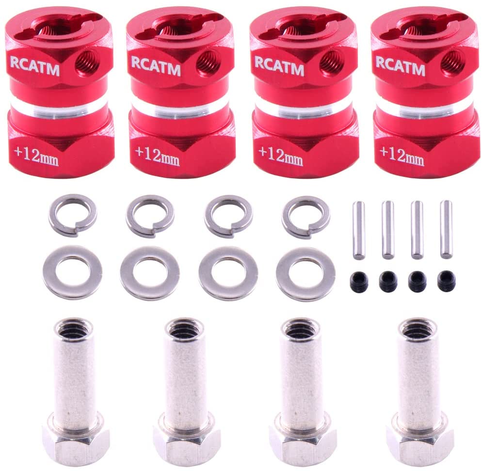 4pcs RC Wheel pad 12mm hex Drive hub Combiner + 16mm Offset Extension for 1/10 axial scx10 90046 D90 TF2 RC Crawler Aluminum Alloy Part (Red+12mm)
