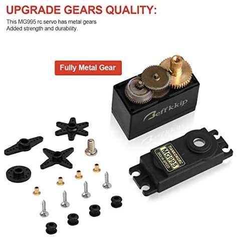 Specification: Gear Type: All Metal Gears Connector Wire :11.81 inch (300mm), signal wire/PWM–Yellow; positive Pole(+)–Red; negative Pole/GND(-)—Brown Item Dimension:40.7*19.7*42.9mm(1.60*0.78*1.69inch) Servo Weight: 55g Positioning speed at 4.8V without load0.17s / 60 degrees; 6.0V without load 0.13s / 60 degrees Dead Band Width: 4us Plug Specification: JR FUTABA, Hitec,Sanwa, GWS are universal Operation Voltage: 3.0V – 7.2V Stall torque: 6V 12kg/cm, 7.2V 13kg/cm. Temperature range: -30 to +60deg Applicable models: biped robot / robot / remote control car, suitable for50-90 methanol fixed-wing aircraft and 26cc-50ccgasoline fixed-wing aircraft and other models Accessories; steering wheel, fixing screws, rubber sleeves and aluminumsleeves. Suitable for most receiver connector: Futaba, Hitec, Sanwa, GWS etc Great for truck, Boat, Racing Car,Helicopter and Airplane. Package includes: 4 X TiankongRC MG995 HI-SPEED Servo Motor & 4X Servo HornKit