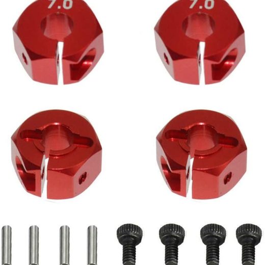 compatible with HSP HPI Redcat Tamiya Traxxas RC4WD D90 1/10 RC Car. Made of aluminum alloy, designed to repair or replace old or broken ones Easy to install and durable in use Lightweight upgrade instantly enhances overall performance in handling and durability Allowing your wheels to move smoothly without being stuck or shake.Supporting running with high speed. Pins and screws are included. Specifications: Material: Aluminium Alloy Hex: 12mm / 0.5inch Thickness: 7mm / 0.3inch Color:Red Total Weight: 8g/0.28oz Package Includes: 4 * 12mm 7.0 Wheel Hex Drive,Red 4 * Pins & Screws
