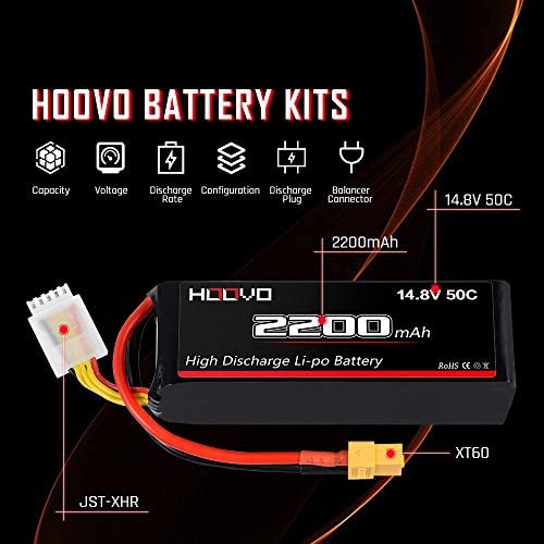 4S 14.8V 2200mAh 50C Lipo Battery Hard Case Pack with XT60 Connector for Popular RC Car RC Helicopter Airplane Quadcopter UAV Drone FPV (2 Packs)