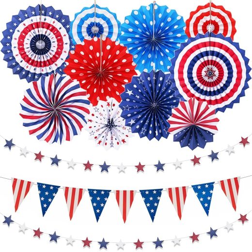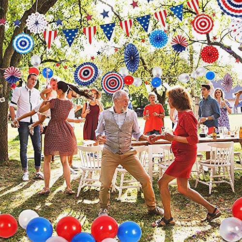 4th of July Decorations Patriotic Decorations Set – Memorial Day Party Supplies Navy Blue, White and Red Hanging Paper Fans, Star Streamer, Flag Pennant, Star Streamer for Veterans Independence Day