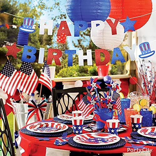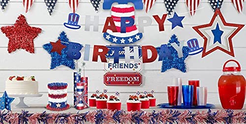 4th of July Happy Birthday Banner Glittery Red White Blue USA American Independence Day Party Supplies, 4th of July Birthday Party Decorations, Pat…