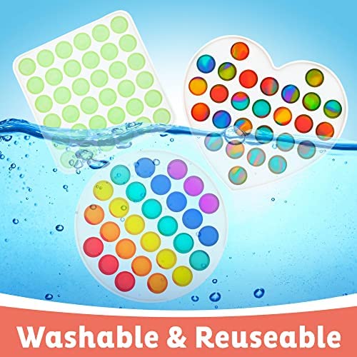 5 Pc Fidget Toy Pack – 1 Jumbo Heart Shaped Pop It, 2 Big Square Poppers, 2 Large Circle Popit. Rainbow, Tie Dye Colors, and Glow in the Dark Figit Popits. Party Favors Pop Its for Toddlers, Kids, Teens, Adults, Boys, and Girls of All Ages. USA OWNED COMPANY Heart Pop It Fidget Pack – Go with a big rainbow Heart shaped popit party favor or with the glow in the dark Square pop it or the OG Circle push pop bubble fidget sensory toy. Make time fly with a pop it game or use as a stress relief toy to relieve anxiety and calm the nerves. The figit popper circle and squares come in rainbow and tie dye color with a durable board to outlive any wear and tear these novelty gifts will endure throughout their lifetime. Great Stress Relief Toys – Whether you want to naturally relieve accumulated stress or anxiety caused by work overload, school or personal issues or just need to push, pop, squeeze or get your ASMR fix, these calming fun sensory giant large poppits puzzle packs will keep you entertained and engaged for hours. This popitsfidgets fisget package kit is the perfect solution! Birthday Party Favors – These simple dimple bubble poppers fidget toys are great Easter basket stuffers, Easter gifts for kids boys girls and perfect for hiding in Easter eggs hunt. Amazing birthday party favors, Easter pop it, classroom prizes, treasure chest mystery fidget box rewards, christmas stocking stuffers, goodie bag fillers, miniature novelty toys. This figet figit fun cool toys bulk figetsss toys sets is the perfect gift for boys, girls 3 4 5 6 7 8 9 10 11 12 years age. Autism Sensory Toys – These adhd fidget toys for toddlers, kids, teens and adults can be used as mini bulk pop its, party favors for kids, pop it birthday decorations for girls. Experience the satisfactory feeling of pushing the bubbles down until they make a slight popping sound that is quiet and silent enough to use during class, then flip the toy over and start again! Have a glow in the dark party and take the figetget toys pack to a dark room and enjoy the spectrum of bright neon colors. USA BASED SELLER – Buy your New Top Trenz Fidget Toy Pack with confidence since we are US born and raised and can be contacted 24/7. Whether a birthday gift, a surprise present or a little selfish fun, make sure to reach out to Zen Labs with any questions or concerns. Most importantly enjoy some fidget popping time with your kids!