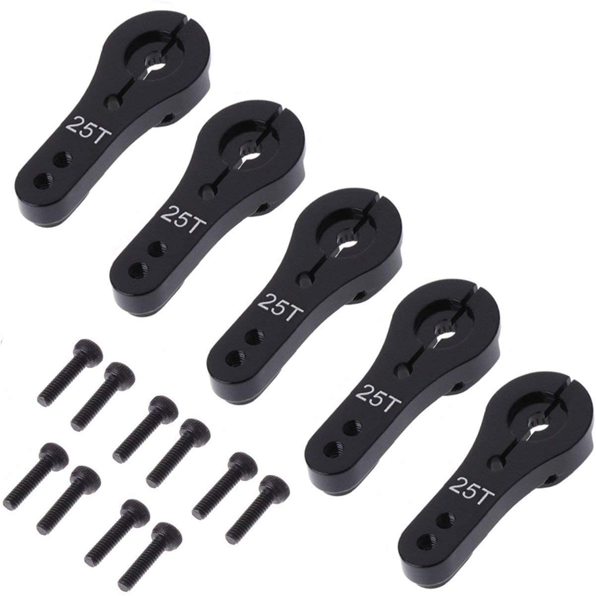 5 Pack ShareGoo 25T Aluminum Servo Horns M3 Threads Metal Steering Arm for RC Car Truck Buggy Airplane-Black