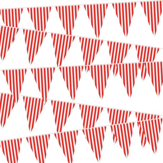 5 Packs Carnival Circus Party Decorations Supplies, Circus Carnival Bunting Banner, Red and White Pennant Banner Triangle Bunting Flag for Carnival Birthday Party, 7.4 x 10.8 Inch