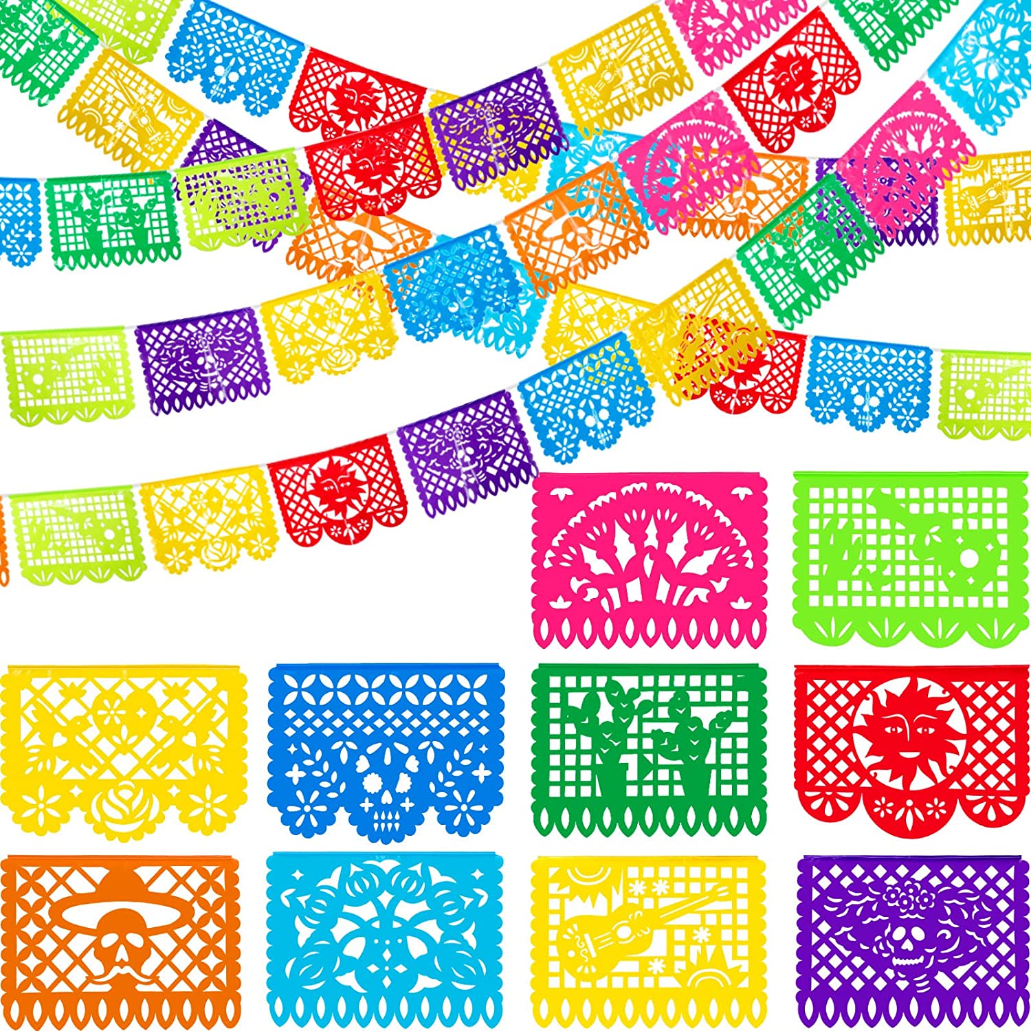 5 Packs Mexican Party Banners Decorations Festival Mexicano Large Plastic Papel Picado Banner Cino de Mayo Fiesta Party Decorations Hanging Banner Flags for Party Supplies, 10 Multi Colored Panels