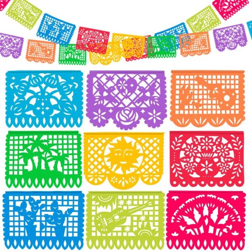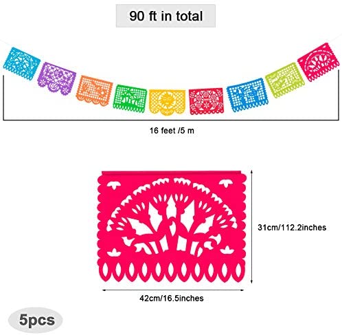 5 Packs Plastic Mexican Party Banners by WXJ13, 90 FT Mexican Fiesta Hanging Banners Flags for Party Decorations Supplies