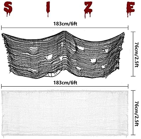 Feature 1)Soft fabrics material : creepy fabrics made of polyester-cotton ,easy to storage, you can use them multiple times.Great for putting the scare into your haunted house or party. (2)Wide uses: you can use the creepy gauze to decorate doorways, halls, bathrooms, porches and decks when holding Halloween parties, midnight thriller challenge activities, etc. It provide a better atmosphere for scary scenes atmosphere. (3)Easy to use : these creepy cloth are flexible ,easy to tear, cut and drape ,so you can design Halloween scary gauze shapes and hanging positions according to your own interests and ideas. Note: If you are not satisfied for any reason, just return for a refund of your purchase price; we promise 24 hours customer support, please feel free to contact us for any product&order problem.