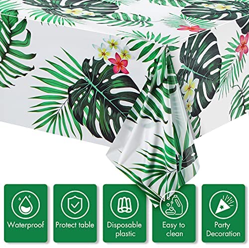 5 Pieces Animal Safari Tablecloth Jungle Animal Theme Tablecover Leopard Tiger Zebra Giraffe Print Table Cover Tropical Leaf Tablecloth Party Supplies for Jungle Safari Zoo Birthday Party Baby Showers