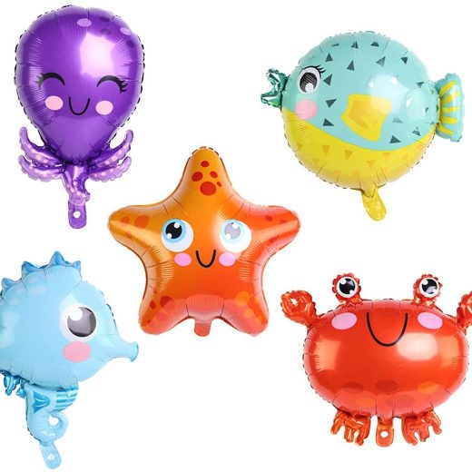 5 Pieces Cartoons Ocean Animals Foil Balloon Large Starfish Crab Pufferfish Hippocampus Octopus Tropical Sea Creatures Mylar Balloons Party Decoration Supplies