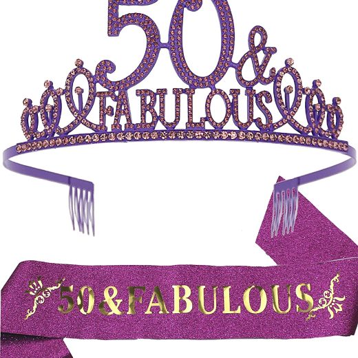 50 Birthday,50th Birthday Gifts for Women,50th Birthday Tiara Purple,50 and Fabulous,50 Birthday Tiara for Women,50 Crown and Sash,50th Birthday Decorations for Women,50th Tiara and Sash for Women