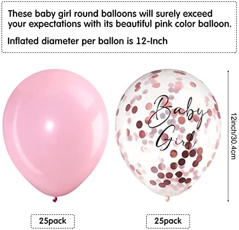 50 Pcs Baby Girl Party Balloons Rose Gold Confetti Baby Shower Balloons 12 Inch Decorative Blush Pink Balloons Latex Balloons Girl Party Decorations for Birthday Wedding Anniversaries Supplies Decor